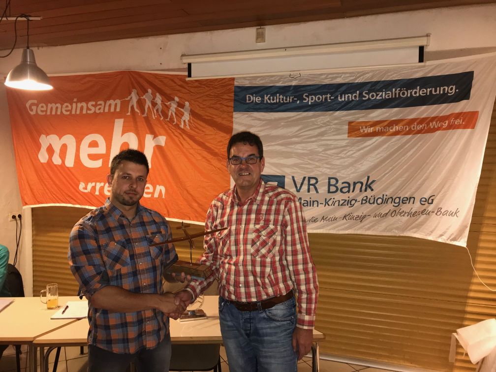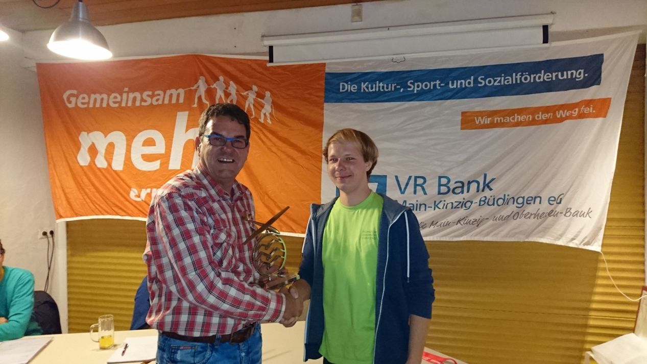 Sigi Samson (2. Vorsitzender) gratuliert Jan Schäfer zum Titel des besten Juniorfliegers im Verein