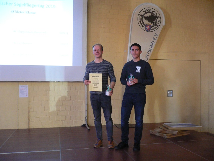 Anlässlich des Fliegertages des hessischen Luftsportbundes am vergangenen Samstag wurden etliche Piloten vom Aero Club Langenselbold ausgezeichnet. Seit Langem war wieder ein Juniorenteam des Vereins erfolgreich. Die Gruppe um Jan Schäfer/Henri Günther/Lars Riewe erflog sich den Vizemeistertitel in der Clubklasse. Jan Schäfer wurde zudem dritter Sieger in der 18m-Klasse der Senioren. In der Doppelsitzerklasse gewann souverän Stefan Schreyer. Mit seinen Flügen, die ihn zum Teil bis nach Tschechien hinein führten liegt er auf Platz 4 im gesamtdeutschen Klassement.