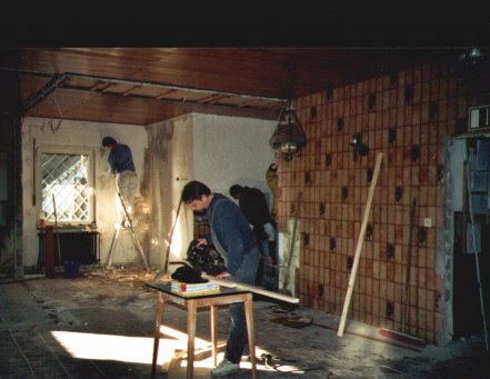 An der Wand hängt ein mit Profi-Software erstellter Projektplan. Es gibt natürlich auch einen Baustellenleiter, erklärt Brandstädter. „Unser Mitglied Heinrich Stichel hat das Projekt initiiert und er koordiniert die ganze Arbeit, schließlich muß alles bis zum Frühjahr fertig sein und alle hier arbeiten nur in ihrer Freizeit, also abends und am Wochenende.“ Bis zum April bauen die Segelflieger für sich und ihre Gäste eine moderne Clubhaus-Inneneinrichtung mit professioneller Thekenanlage und einem modernen Belüftungssystem. Die gesamte alte Inneneinrichtung wurde entfernt. Das renovierte Clubhaus wird mit neuer Bestuhlung ausgestattet und ein helles und freundliches Ambiente haben.
