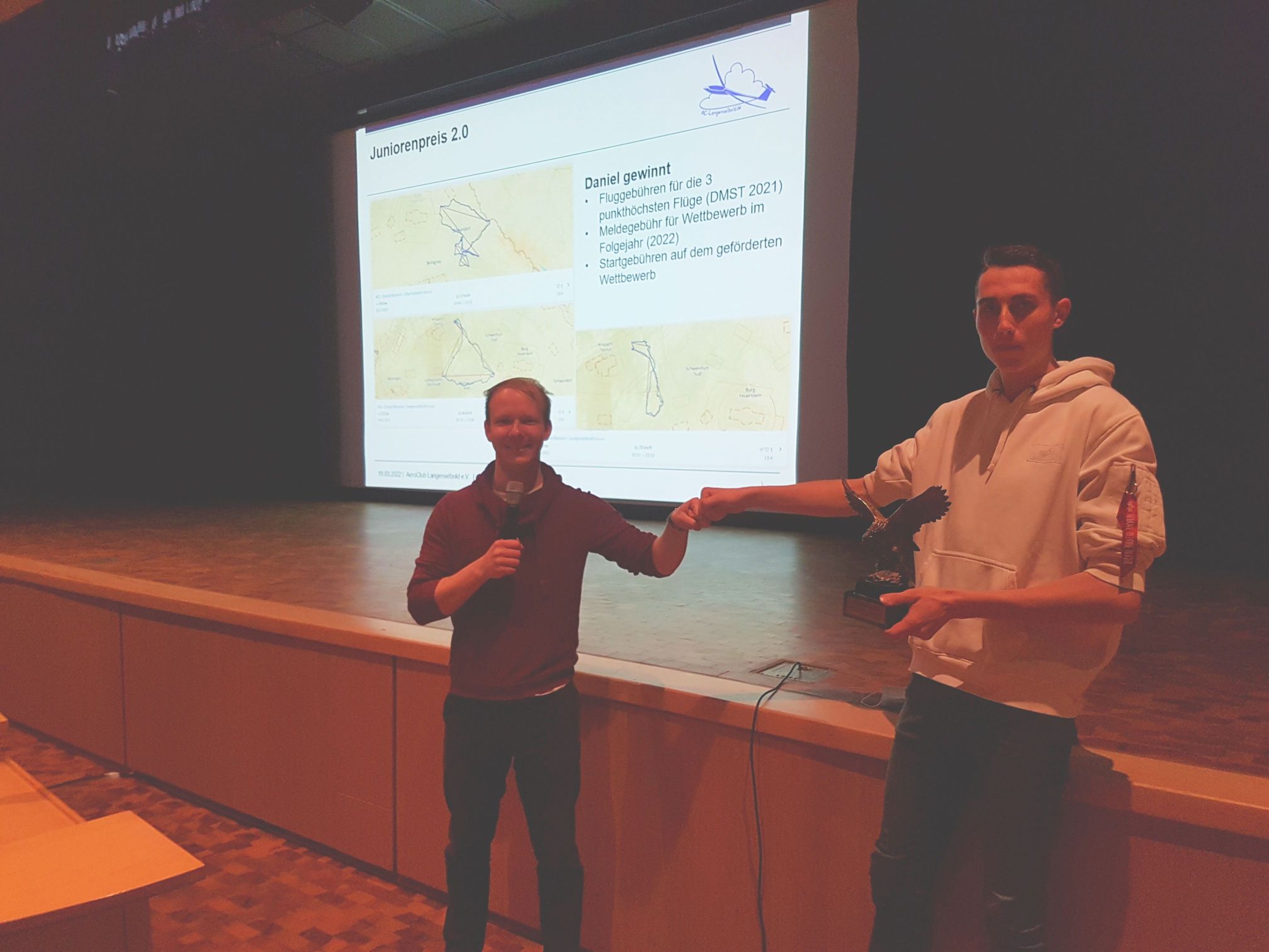 Aufgrund der derzeitigen Lage fand die Herbstversammlung in der Stadthalle am Schloss statt. Stefan Schreyer wurde an diesem Abend für seine Leistung in der Deutschen Meisterschaft im Streckensegelflug geehrt. Bei diesem Wettbewerb werden die drei besten Flügen der gesamten Saison gewertet. Mit Flügen bis zu 830 km gemeinsam mit Copilot Sigi Samson erreichte er die Spitze der Deutschen Wertung. Im kommenden Jahr werden die Zwei die Fahnen Hessens auf den Deutschen Meisterschaften im oberfränkischen Bayreuth vertreten.